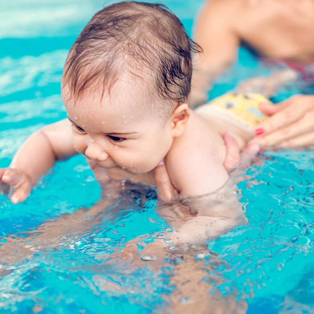 Usar fraldas especiais para piscina e evitar refeições pesadas antes da atividade.