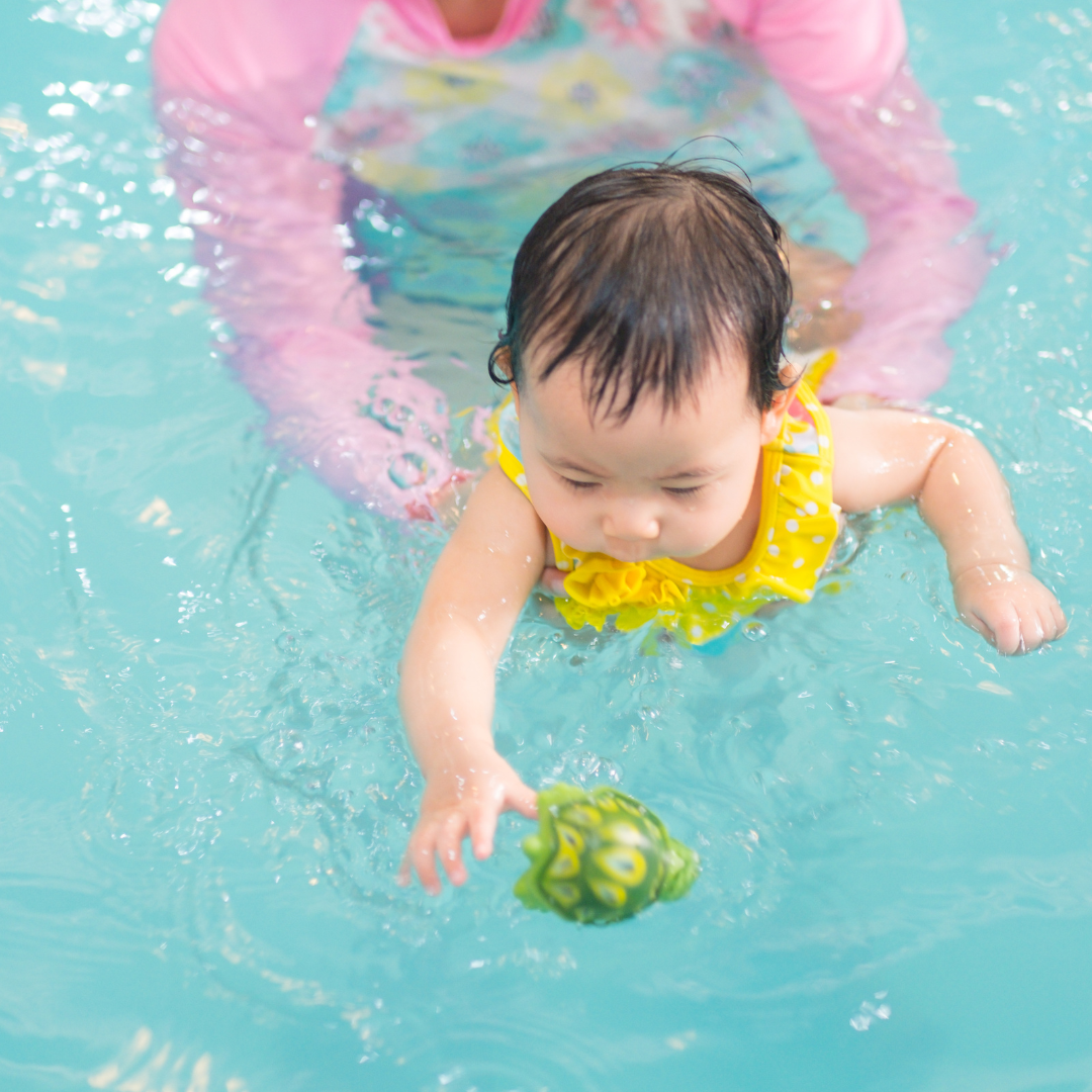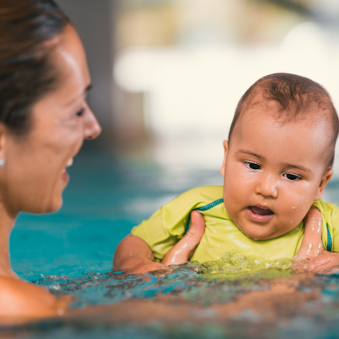 Auxilia na adaptação ao meio aquático, promovendo conforto e segurança para o bebê, enquanto estimula o desenvolvimento sensorial em um ambiente divertido